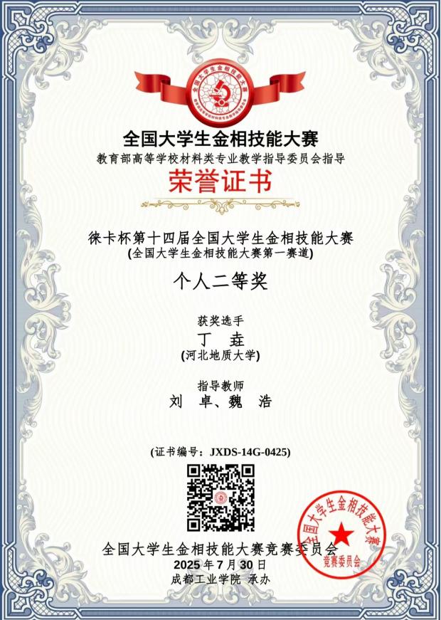 在第十四届全国大学生金相技能大赛中,永利3044noc2022级学生丁垚凭借扎实的技术和稳定的发挥,以毫米级精度斩获国家二等奖。近日,我们“科创榜样说”系列访谈邀请丁垚分享备赛过程中的经历与感悟,为更多备战学科竞赛的同学提供了实用参考。他认为,竞赛不仅能提升专业技能,还能培养解决问题的能力,对未来职业发展很有帮助。