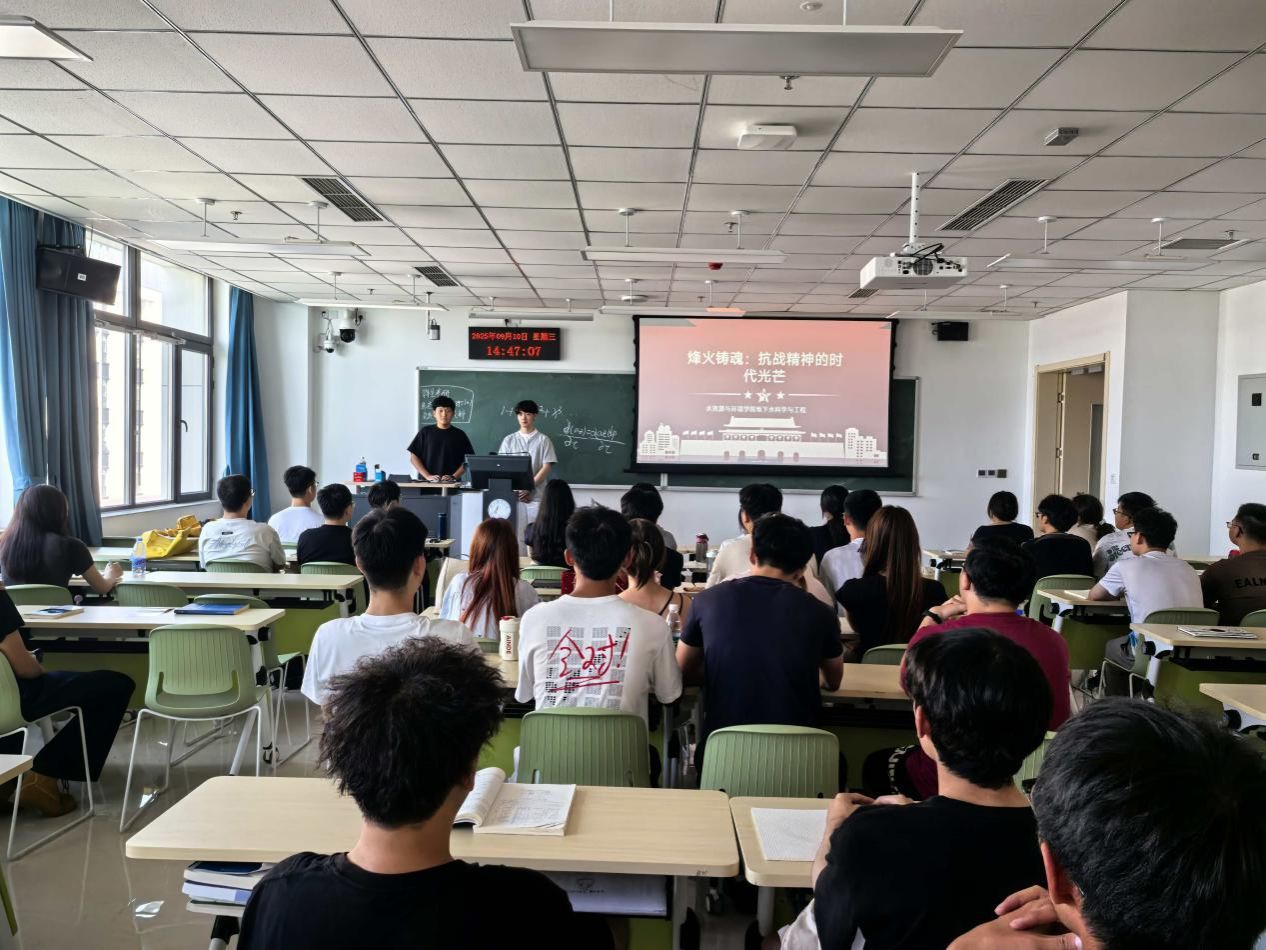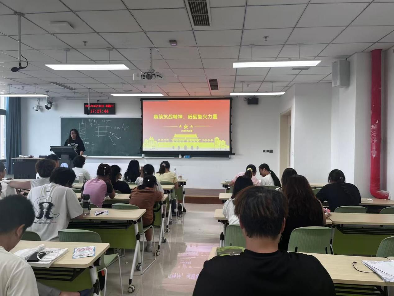 爱国主义主题班会的开展是系列活动中覆盖面最广、参与度最高的一环。各班紧紧围绕“赓续抗战精神,厚植爱国情怀”这一核心主题,展开深入学习和讨论。班会过程中,辅导员系统梳理了近代以来中华民族从苦难到辉煌的奋斗历程,重点讲述了革命先烈、科技精英、时代楷模等不同历史时期英雄人物的感人事迹,引导学生深刻认识到个人命运与国家命运紧密相连。