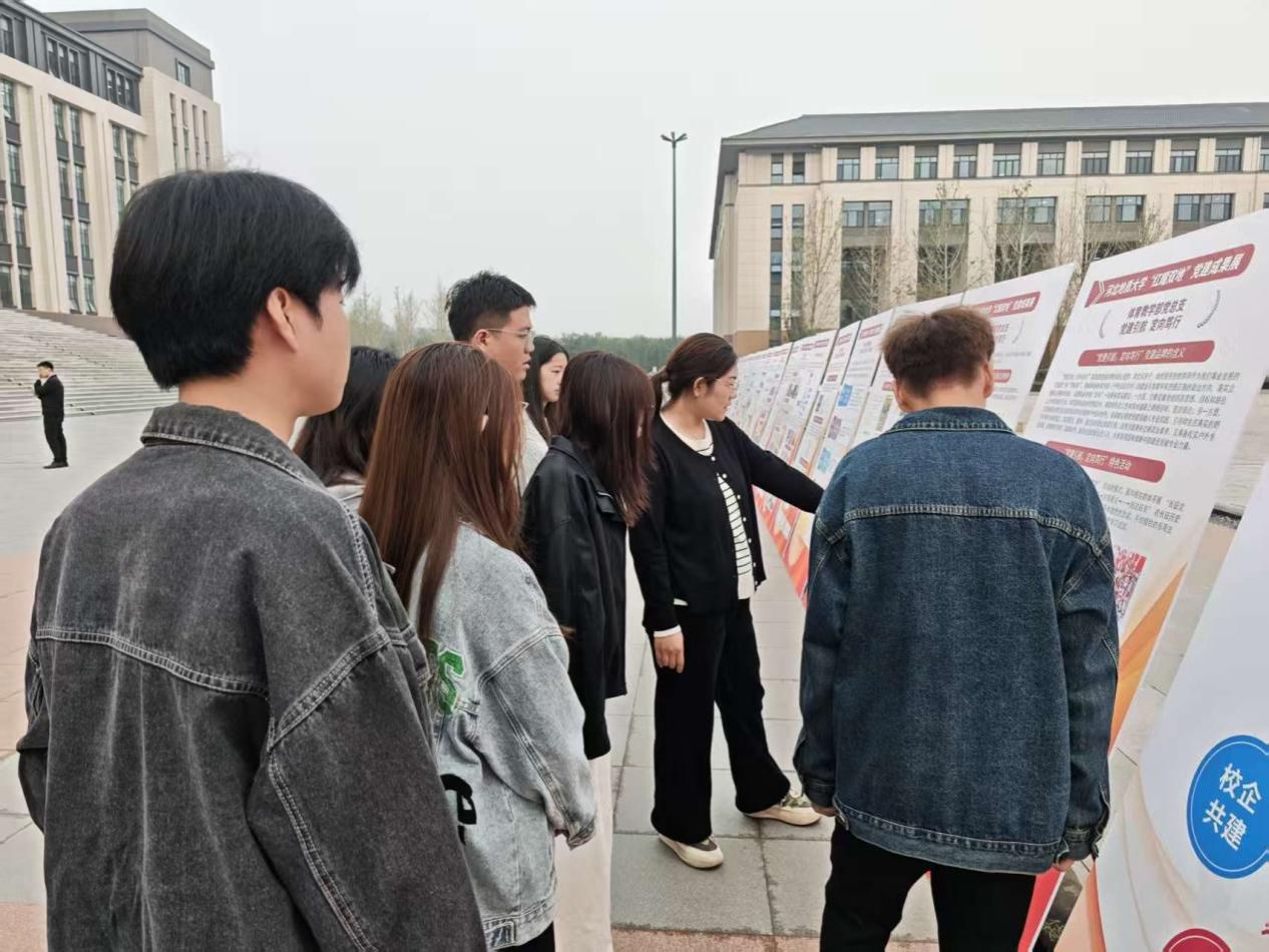 为深入学习贯彻习近平总书记关于红色文化传承的重要论述,扎实推进党员理想信念教育与思想建设工作,2025 年 10 月 16 日下午,永利3044noc党委副书记张丽娜、学生党支部书记姜晓雪带队,组织学生党员前往慕水广场,参观 “红耀双地”主题党建成果展板。