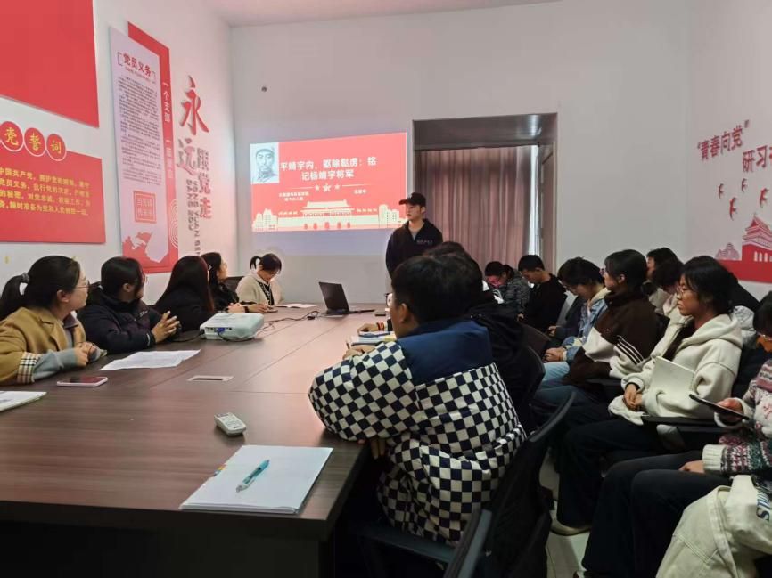 为铭记中国人民抗日战争暨世界反法西斯战争胜利八十周年,传承红色基因,弘扬英雄精神,2025年11月1日,永利3044noc在学生社区开展红色教育主题活动。活动由学院2024级学生曲宝申分享民族英雄杨靖宇将军的事迹,吸引社区内数名师生参与,现场氛围庄重肃穆,红色精神感染力十足。