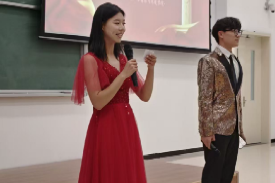 演讲间隙,精彩节目轮番上演,为活动增添别样光彩。王开弘、姚禹、姚程骞三人合唱《我爱你中国》,深情的歌声抒发对祖国的赤诚热爱;钟银迷演唱的《红日》旋律激昂,点燃全场热情。